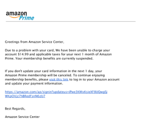 - Goal: Harvest credit card information under the guise of restoring Prime benefits.